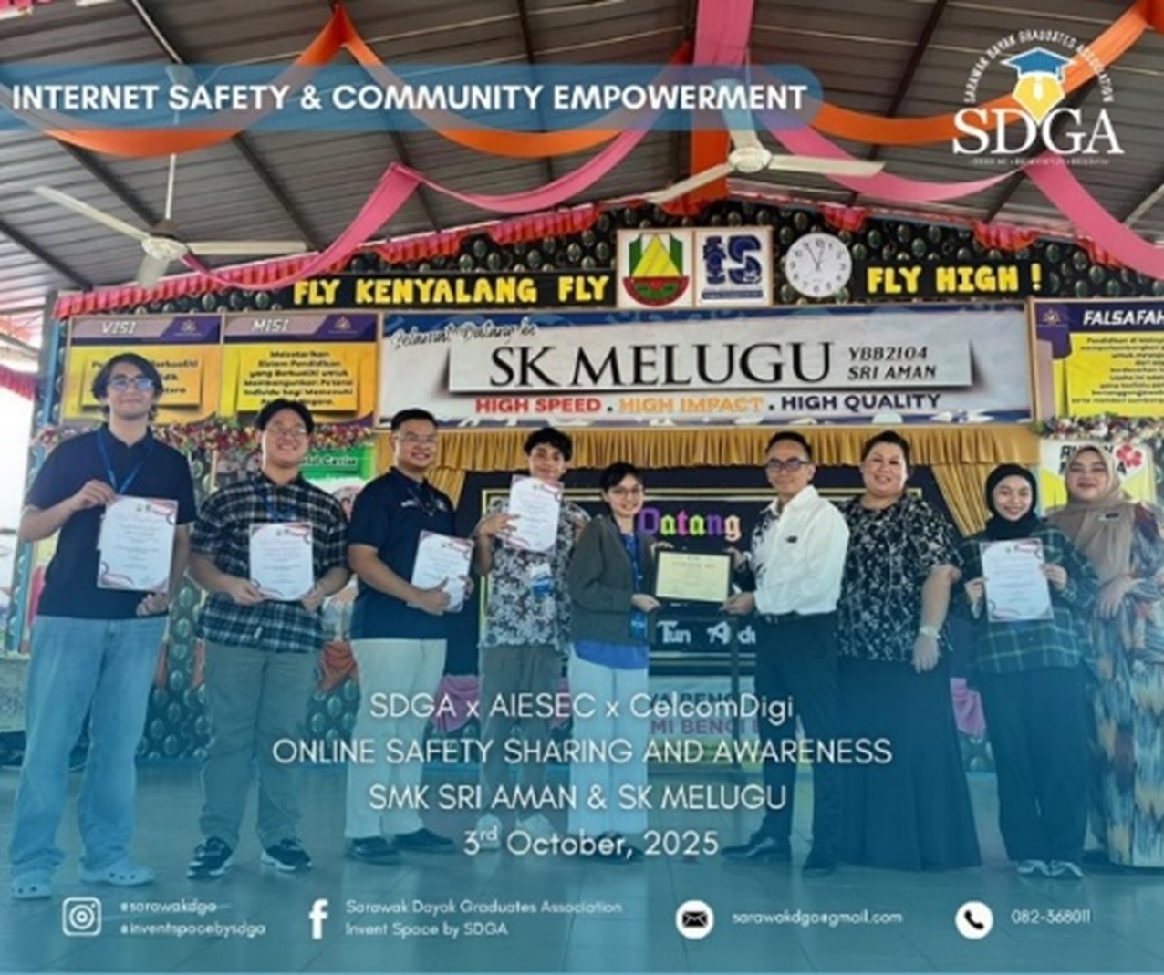The Sarawak Dayak Graduates Association (SDGA), as a co-organiser, jointly implemented CelcomDigi’s S.A.F.E Internet Initiative in collaboration with the Association Internationale des Étudiants en Sciences Économiques et Commerciales (AIESEC), promoting online safety and digital responsibility among students across Sarawak.