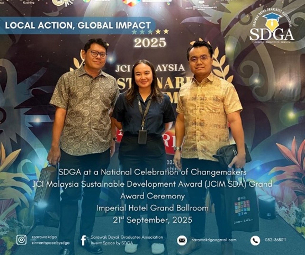 The Sarawak Dayak Graduates Association (SDGA) attended the JCIM Sustainable Development Award (SDA) Grand Award Ceremony 2025 held at the Imperial Hotel Grand Ballroom, joining more than 500 guests from government agencies, the corporate sector, non-governmental organisations, youth networks and international delegates.
