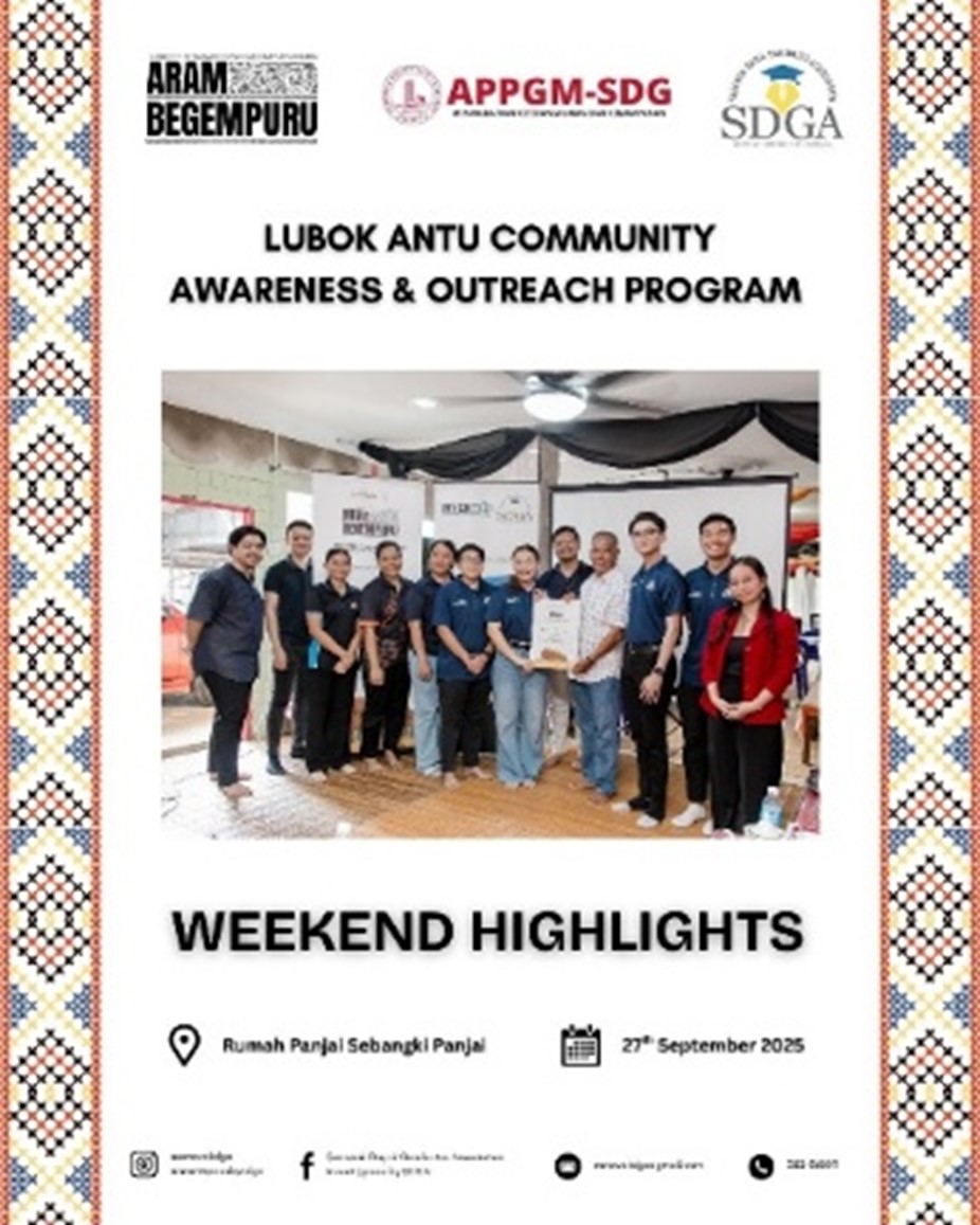 The Sarawak Dayak Graduates Association (SDGA) officially launched its inaugural Aram Begempuru Community Outreach Programme on Saturday, 27 September 2025 at Rumah Panjai Sebangki Panjai here, with support from the All-Party Parliamentary Group Malaysia on Sustainable Development Goals (APPGM-SDG).
