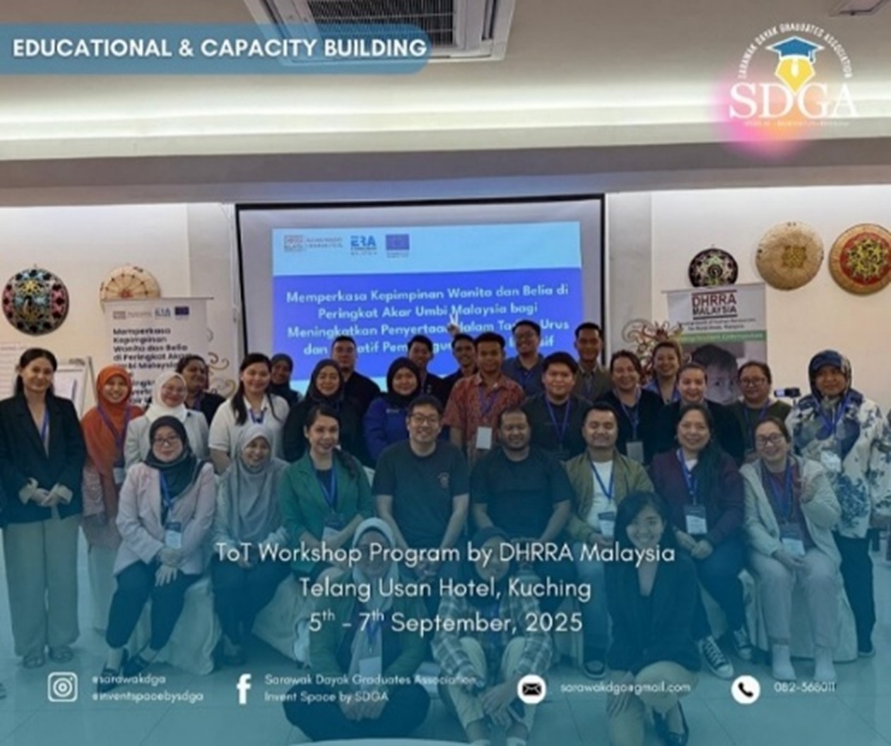 Sarawak Dayak Graduates Association (SDGA) President Ts. Rizzo Mungka and Deputy Treasurer General Aileen Kumang recently participated in a three-day Workshop Programme organised by DHRRA Malaysia, held from 5 to 7 September 2025 at Telang Usan Hotel.