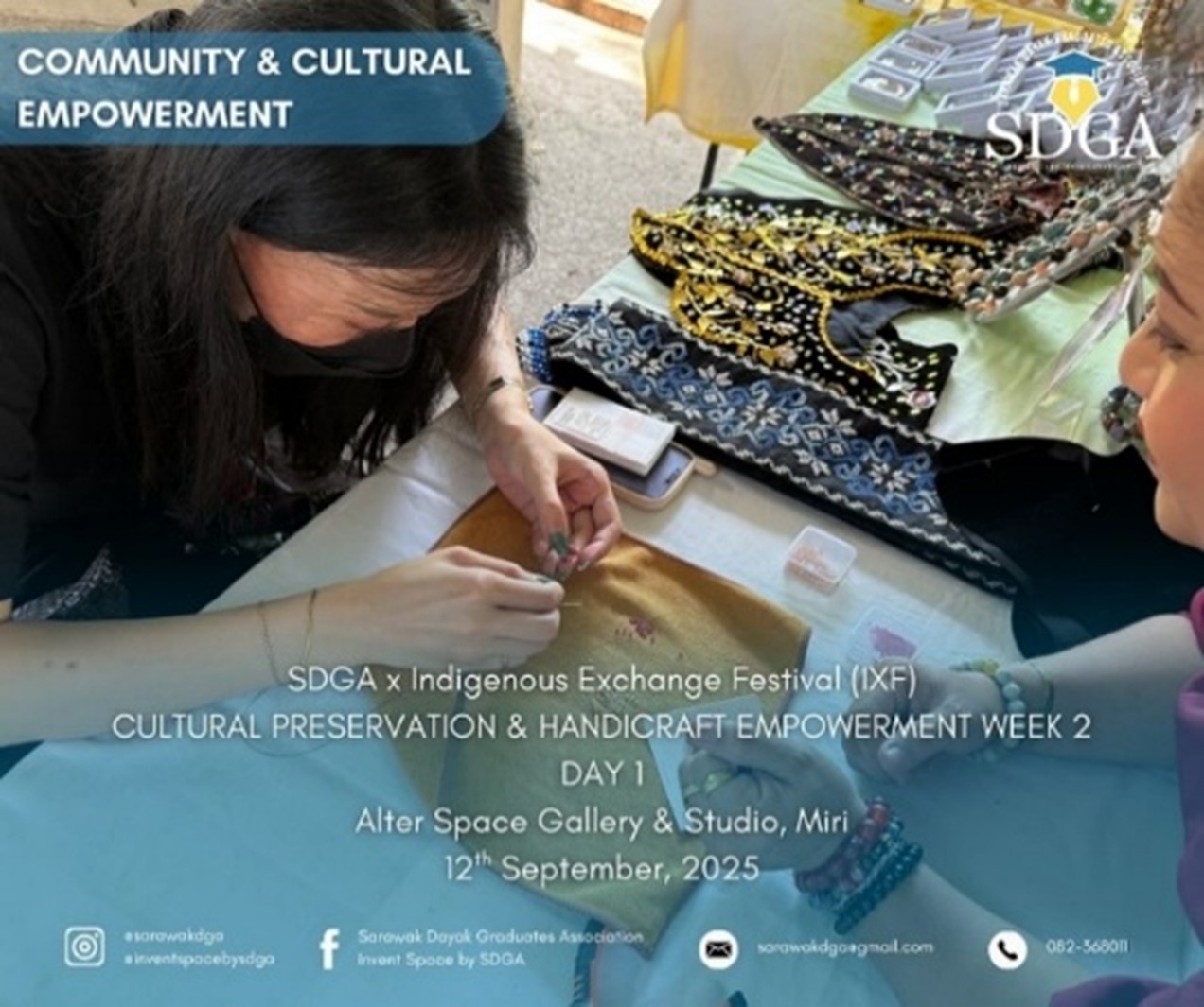 As part of the Heritage Handicrafts & Garment Crafting Empowerment programme in Lubok Antu, the Sarawak Dayak Graduates Association (SDGA) proudly showcased local creativity at the Indigenous Exchange Festival (IXF 2025), held at Alter Space Gallery & Studio here from 12 to 14 September 2025.